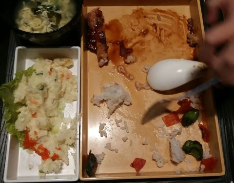 点了*咖喱牛肉定食 开胃菜是渍鱼 相当不赖! 餐前水果的摆盘也不马虎 然后是米饭 这大概是这段时间里吃过最好的米饭了,做得挺好的,火锅比较一般,红豆年糕不太美味,其他刺身都挺好的 - 本来就以为是一个普通的吃饭的地方,但是进去之后竟然发现完完全全就是根本就是根据日本的风格装修的。不错