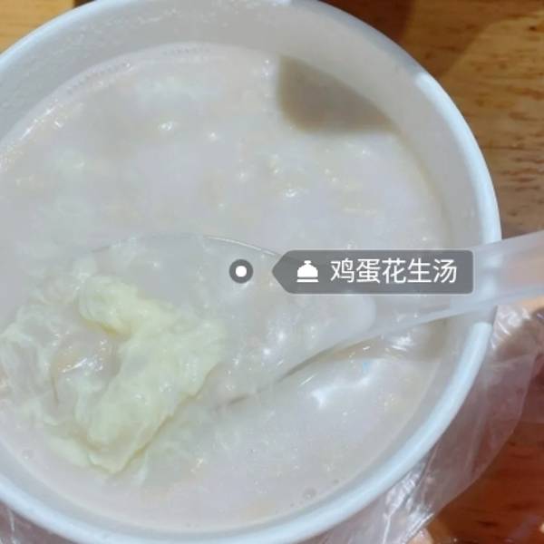 - 鸡蛋花生汤生鸡蛋,用热的花生汤冲泡的,还不错