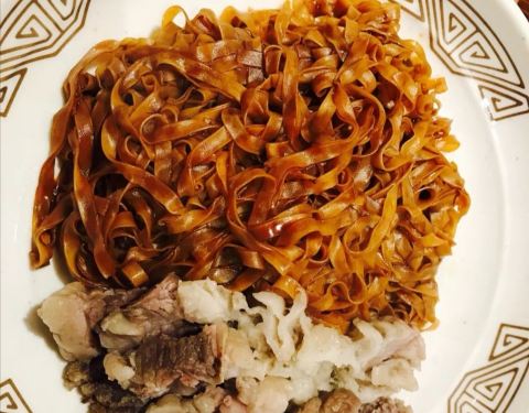 打卡明星店,中午饭点时刻到店,可能性价比不高,店内没几,太肥了,占了一半,个食客,招牌坑腩捞粗,牛腩没几块面条配上搭配的醋,口感还不错,比较清爽。