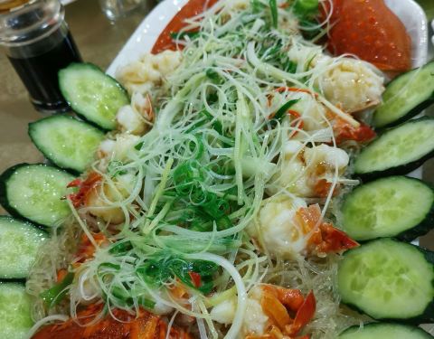 对于不懂点菜的人来说,有套餐选择真的是太方便了。六个人,598的套餐,人均不到一百,还有龙虾,聚餐非常划算了。 |豆豉蒸鳗鱼^鳗鱼是我的爱。肥嫩肥嫩的,一点点豆豉就很入味了。 |红烧鲍鱼^六人套餐刚好一人一...对于不懂点菜的人来说,有套餐选择真的是太方便了。六个人,598的套餐,人均不到一百,还有龙虾,聚餐非常划算了。 |豆豉蒸鳗鱼^鳗鱼是我的爱。肥嫩肥嫩的,一点点豆豉就很入味了。 |红烧鲍鱼^六人套餐刚好一人一个,不浪费。 |龙虾粉丝^个头不小哦。肉质很结实,新鲜。 其他都是套餐内的,味道都还可以,分量不用说,非常实在了。 最后单点了一份主食|糯米蒸膏蟹^。蟹膏很多!底下的糯米吸满了螃蟹的香味,吃了好多。