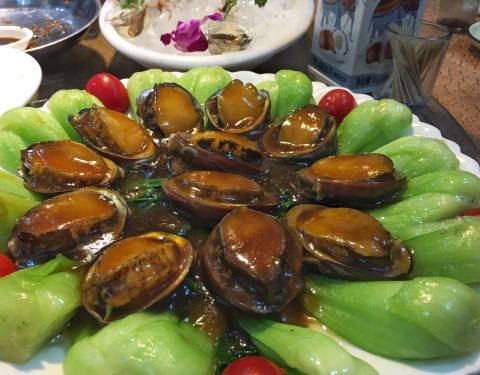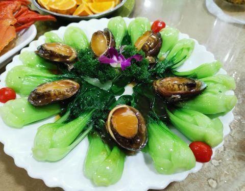 - 红烧鲍鱼:上面鲍鱼底下青菜,看起来颜值很高,鲍鱼Q弹细嫩青菜也很入味