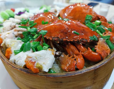 鹭景总店位于仙阁里小区里,不是很好找,但由于价格实在,还是很多人慕名而来,生意相当地好!由于生意火爆,才有了这家分店,但想要前往品尝,还是得提前预约才有座位,店内已经很帖心地做好了排菜,十人桌一般在380―1180元/桌,丰俭由人。之前我去的那次选择的是550元排菜,12道菜,有海鲜蒸菜蟹、白灼大虾、清蒸桂花鱼、红烧鲍鱼、北京烤鸭等等,价格很实在!推荐糯米蒸菜蟹,糯米+菜蟹的搭配不错,重要的是量足,蟹肉味美,加上清甜的糯米也很容易饱腹。