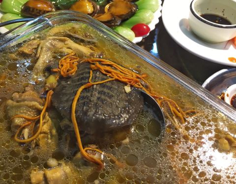 对于不懂点菜的人来说,有套餐选择真的是太方便了。六个人,598的套餐,人均不到一百,还有龙虾,聚餐非常划算了。 |豆豉蒸鳗鱼^鳗鱼是我的爱。肥嫩肥嫩的,一点点豆豉就很入味了。 |红烧鲍鱼^六人套餐刚好一人一个,不浪费。 |龙虾粉丝^个头不小哦。肉质很结实,新鲜。 其他都是套餐内的,味道都还可以,分量不用说,非常实在了。 最后单点了一份主食|糯米蒸膏蟹^。蟹膏很多!底下的糯米吸满了螃蟹的香味,吃了好多。