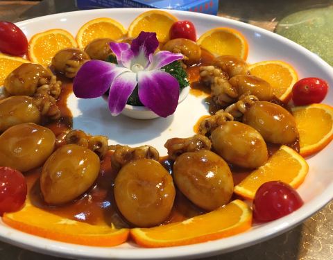 红烧鲍鱼酱汁浓郁,红烧味浓,鲍鱼个头大,口感Q弹Q弹,非常有弹力