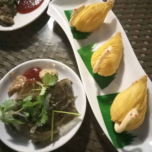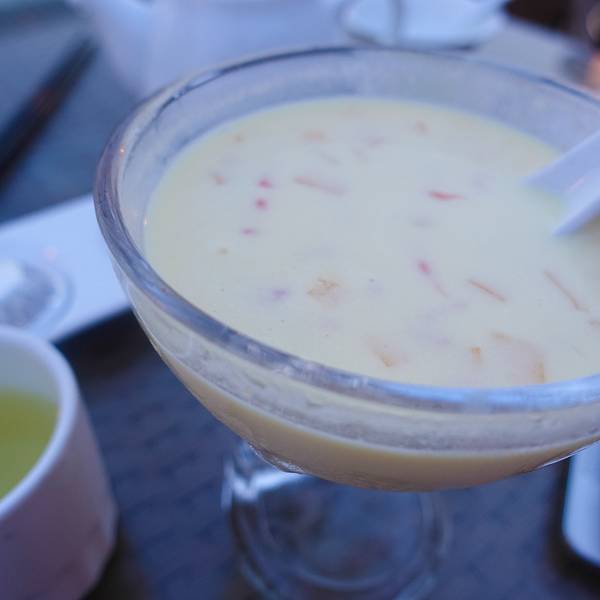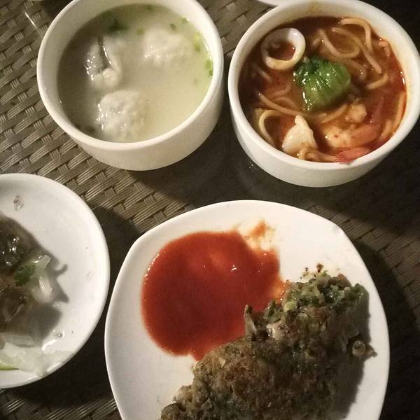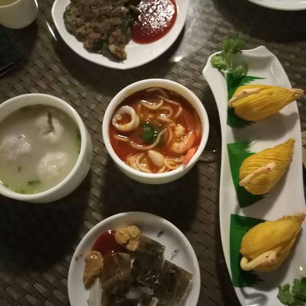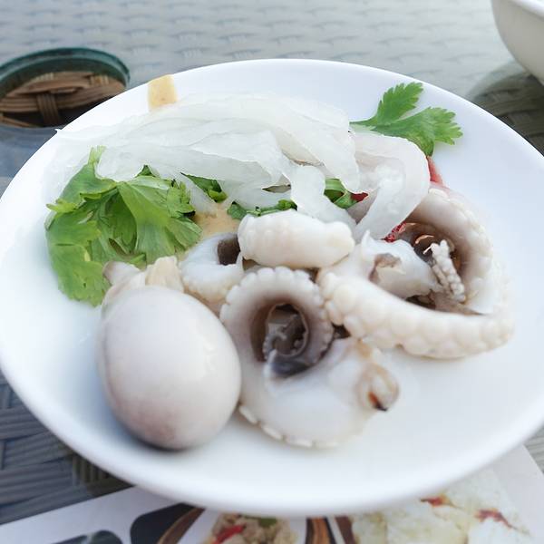 点的菊花茶,天鹅酥是刚做的,吃的时候很热乎,虾饺里面都是整粒的虾仁,味道不错。鱼丸汤和沙茶面也是特别新鲜,海蛎煎刚刚好,沾着番茄酱吃。土笋冻很小块看着挺干净的,海苔饼后来又点的,也不错。晚上不饿就想尝尝味道没敢多点。吹着海风看着海景很清爽,茶位费每人5元,服务费是15%,态度特别好非常值得。就是点评券不找零,多支付了几元,总之很愉快的进餐。