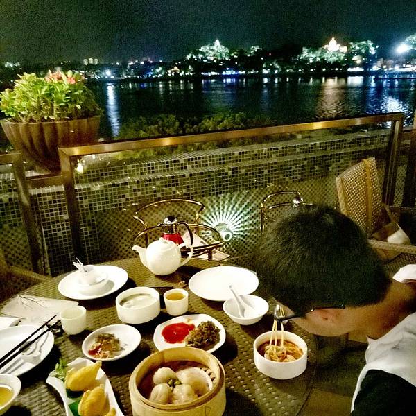 不到10分钟就叫到号了,姑娘把我们领到位置上安排好,坐外层简直太好了,夜晚的海景无敌!