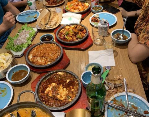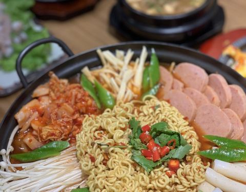 真的好久不吃部队锅了 他家的里面有牛肉,板筋,和鱼饼比以前总吃用料好很多。 装饰上很多锅盖还有意思记得首尔有个金北顺大锅家很像。感觉就是韩式的火锅,才叫大锅家的吧? 「延边黄牛肋条」喜欢吃烤肉的这个不错的,还是黄牛肉,一般吃烤肉我也会点牛肋条,烤起来好吃。 「八爪鱼锅」有个鱼缸海鲜还是挺新鲜的,感觉所有的锅泡大米饭都挺好吃。 [环境]门脸很喜欢还有唱歌的小哥哥 [服务]因为刚开吧人又多,有点点跟不上,不过我出来吃饭不会太刻意要求服务。