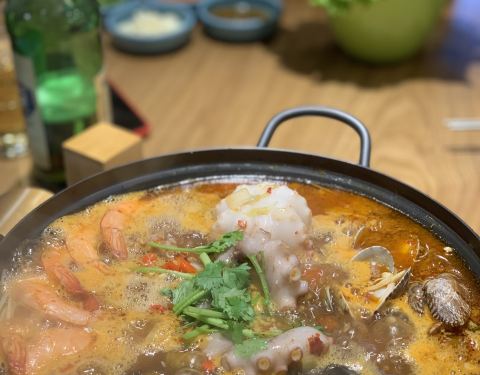 干净敞亮的韩料馆,各色锅底内容丰富。