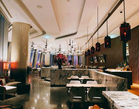 餐厅位于杭州康莱德酒店的50层,透过巨大的落地窗可饱览杭城美景,内饰精美大气,设计灵感源于“太太的客…