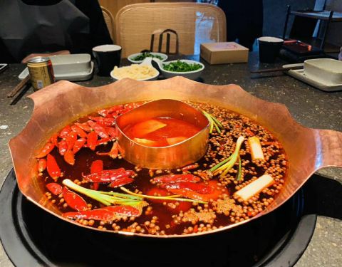 很有设计感的环境,质量很高的服务,有创意的菜品,就在天府一街中环岛广场C座,名字很像日料店,结果是火锅,浅喜火锅玩的是种格调,一种情怀。最近的是营业赶紧去种草,没想到给我很多的惊喜。是血毛肚嫩脆化渣,建议点,我吃的是番茄鸳鸯锅,中间番茄味很正点,是新疆番茄熬出来的味道,蟹柳酥肉好好吃,小吃饮料全部自产。