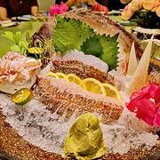 鲷鱼活造:摆盘精美,活鲜嫩滑,剩下的鱼头和鱼骨下去熬的汤,也十分清甜。