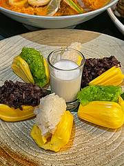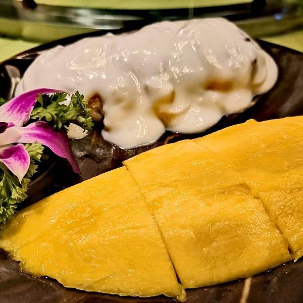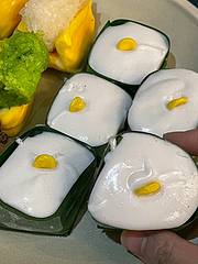 芒果糯米饭:椰浆下藏着的是黑白糯米各半的惊喜,已吃撑,还是忍不住多挖了两口。