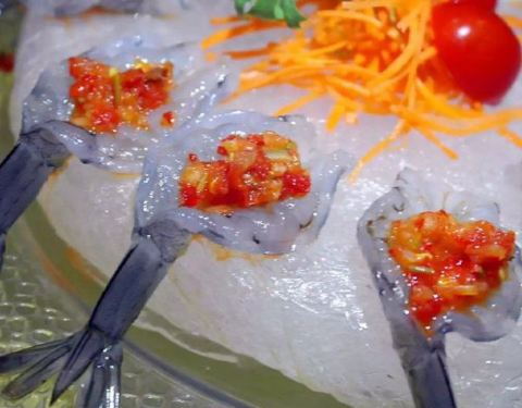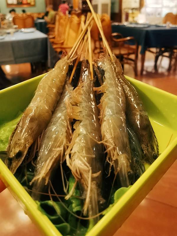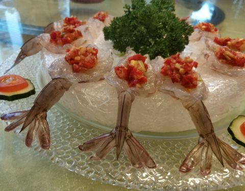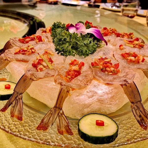 香茅浸虾,好像被松骨后的活虾乖巧地栖息在手指杯里,合着料一口闷才是活虾真谛。