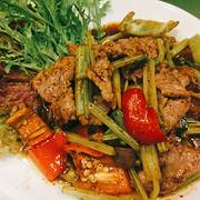 十年往上的泰式料理,绝无分号,仅此一家。 吃货朋友带路,从此觉得它家的咖喱醉迷人,去了一趟泰国东吃西望还是不能比拟也撼动不了心中泰菜No.1地位,各人私以为泰国本土放大了酸辣咸甜苦的味觉,国人体验后只会觉得齁咸,食材本真的味道就稀疏寡淡了。香遇巴黎懂得结合国人口味优化成既有泰味又能最大保持食材鲜度的料理,也才能百吃不腻。 泰式生蚝,绝逼新鲜出炉的生蚝搭配泰式特调酱料,泰鲜甜! 图二牛肉爆炒后加了黑胡椒,牛肉的嫩度被黑胡椒浇灌后更提味,味道偏向于闽菜,好吃的那种。 咖喱皇炒蟹,蟹的个头明显比别家个头大,壳硬肉实,咖喱酱的存在让平日不太吃吃米饭的我也下去了一碗,泰国米也是加分项。 火山排骨是新菜,型似火山,微酸微辣的它煮煮后更入味。 桂花鱼被青柠后鱼的灵魂才被真正的召唤出来,一下筷就被我下去了一整面。 香茅浸虾,好像被松骨后的活虾乖巧地栖息在手指杯里,合着料一口闷才是活虾真谛。 又想念它了…