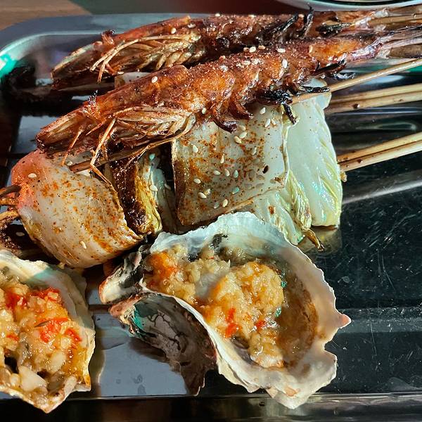 这边的海鲜我们吃的很舒服,味道都不错,而且不贵。又走回来了,正好夜幕降临,感受一下晚上的东山岛来一些海鲜烧烤!随便坐吧,海鲜好新鲜,味道不错!