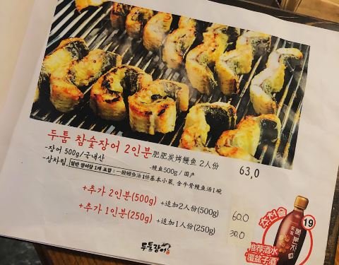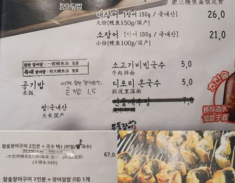 - 店里有烤鳗鱼和鳗鱼盖饭 韩国的鳗鱼比较贵 推荐可以点鳗鱼盖饭定食 有一个鳗鱼盖饭,一个鳗鱼汤,...