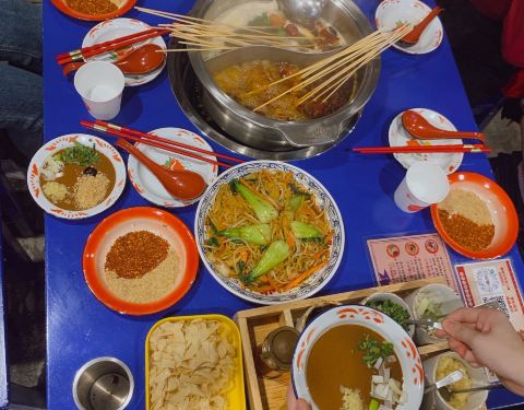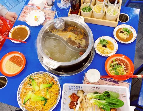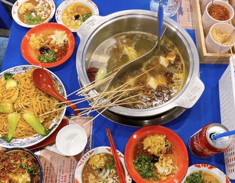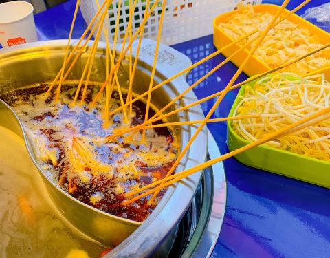 - 味道很正宗,火锅底料都马路边边原来的味道。 在这里可以吃串串,吃麻辣烫也可以吃麻辣香锅