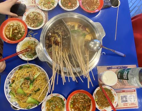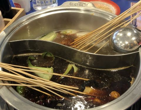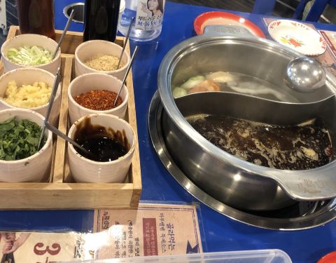 真的吃了一次就陷进去的串串香我们点了鸳鸯锅 ~基本的串串都有的~400韩币一串、推荐牛肉好好吃,蘸料 分油碟和干碟,配了两种都很棒 人有很多 有点忙不过来的感觉每一桌都坐满 配料全部都是从中国寄过来的,味道⭐️⭐️⭐️⭐️⭐️,食材很新鲜,菜品挺丰富的,而且汤底也很香❤️还会再去哒✌️
