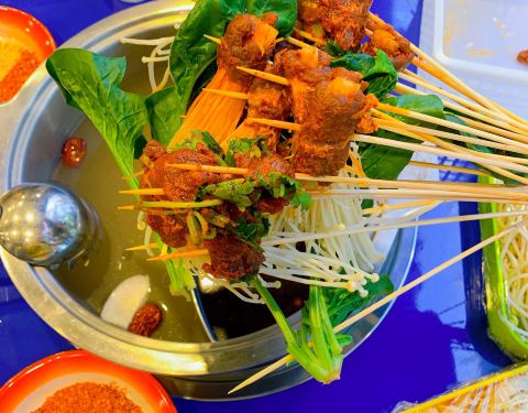 店里小姐姐会超级耐心帮你调酱料,有三种可以选择!异国他乡简直治愈灵魂 味道和国内串串香差不多