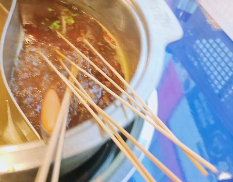 今天真的是特地的去马路边边吃串串!太好吃了❤️ 里面有麻辣烫 炒饭 炒面 还有火锅底料加串串 像吃火锅的那种感觉 店里的装修风格 真的是妥妥的中国风 感觉到了四川的感觉很有亲切感! 店里的服务员都很nice!服...今天真的是特地的去马路边边吃串串!太好吃了❤️ 里面有麻辣烫 炒饭 炒面 还有火锅底料加串串 像吃火锅的那种感觉 店里的装修风格 真的是妥妥的中国风 感觉到了四川的感觉很有亲切感! 店里的服务员都很nice!服务也很好 会给我们调不同的蘸料!南北方的蘸料都有! 我们吃的是火锅锅底加串串 我们两个人吃了30个串串,加上一份炒面!吃得正好 刚刚好! 味道方面不用说就是好吃!我们店的是鸳鸯锅 辣度正好!里面串串的种类也很多!