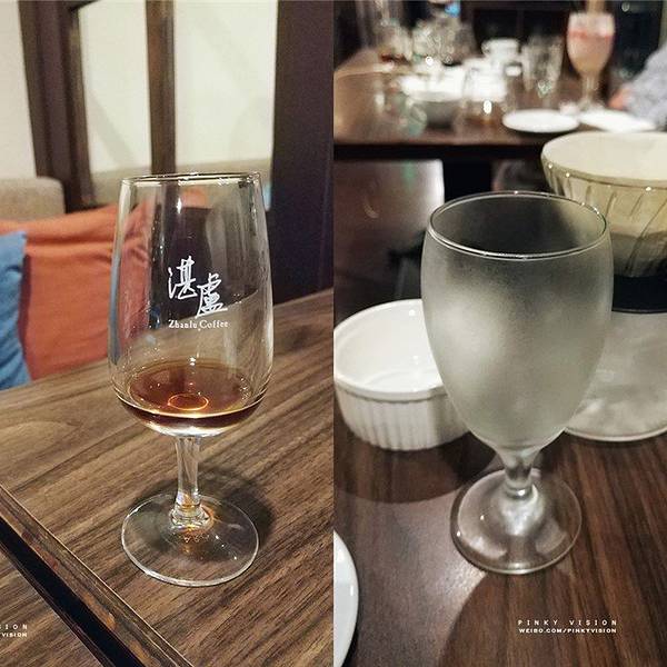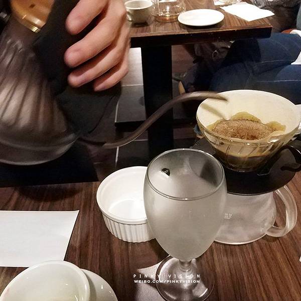 湛盧咖啡,简体为湛卢,以桌边冲煮服务著称,这是一家很有态度的咖啡店,因为咖啡师会坚持手冲咖啡流程,并会坚持磨完豆子拿到你跟前让你闻一下干香,然后在你面前一步步的完成冲咖啡的过程,让客人看到他们对咖啡的态度,那种优雅和神圣一般的态度,让人不得不对他们肃然起敬,也断然是不能随意对待自己面前的这杯咖啡。大家每人点了一种,到这里来自然我是觉得没脸点拿铁,我们都是相互share的,和大家要岔开,于是我点了水洗巴拿马2016翡翠庄园的Geisha,只有我点的是冰的,我实在是怕热,不喝点儿冰的在台湾这么热的地方我整个人会不好的。Geisha是最贵的咖啡了,在哪家店都是,生豆本身有迷人的花香和亮眼的果酸,荔枝和柑橘的味道,并且是限量供应的。价格650元/人,是的,他们是用人来定义单位的,不是杯,人民币130元/杯,着实的贵。冰的好处就是果酸就不像热的那么刺激,所以像我这种不太能接受果酸咖啡的比较适合。咖啡师说冰的他们会放更多的咖啡粉,因为冰的萃取会淡些,大家都说我赚了,也是,100g就要1000TWD,经过专业人士们的评判,冰的Geisha非常好喝。