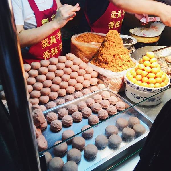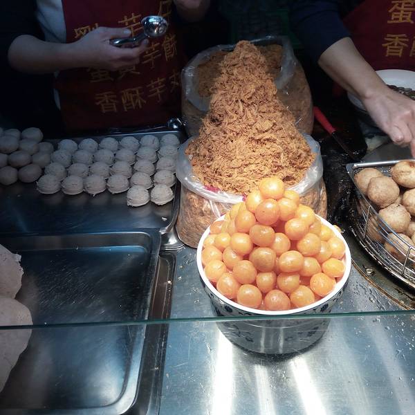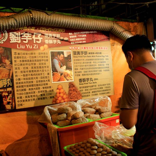2、[刘芋仔]宁夏夜市排队美食,台湾食尚玩家多次报道,他家只买两个东西,鸭蛋黄裹肉松再裹芋头泥,下油锅炸至酥脆,还有一个原味芋头泥炸的,哎,当然还是鸭蛋肉松的好吃,但是实在是太high calories了。果然是好吃的都不健康,健康的都不好吃啊!