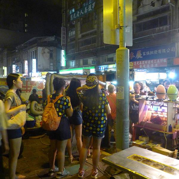 这个芋仔饼是宁夏夜市这里夜市老字号之一了 吃得太饱 只好买两只芋头饼外带 排队人蛮多的 老板态度很差 大概是台北之行态度最差的一家了 很凶的口气 芋头饼没有直接吃 拿回民宿想和朋友当夜宵的 结果两个人都没吃 第二天早上吃味道一点不好了 咸蛋黄倒是一整个的 表皮不酥脆了 大概买好马上吃会好吃吧