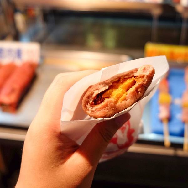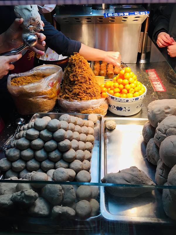因为也是最后两个晚上了,使劲吃起来~想起来宁夏夜市有几个必吃嘛,就寻觅了起来。第一家就是刘芋仔~买了一个蛋黄一个没有蛋黄的,一共65台币。其实也没有多么的惊艳,不过来了建议还是吃一下的~比较特别~其他地方的确也没有看到。