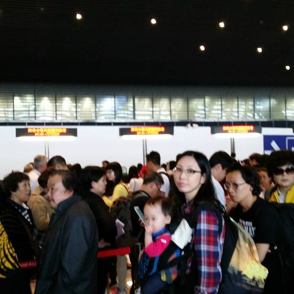 抵达台北桃园机场,没想到...从深圳湾坐7人座商旅直通车到香港机场,150元一人,3岁小朋友收全价。机场柜台换登机牌时根据小朋友的需要要了一个靠窗的座位,飞机上有动画片看,所以2个小时的飞机行程安静度过。