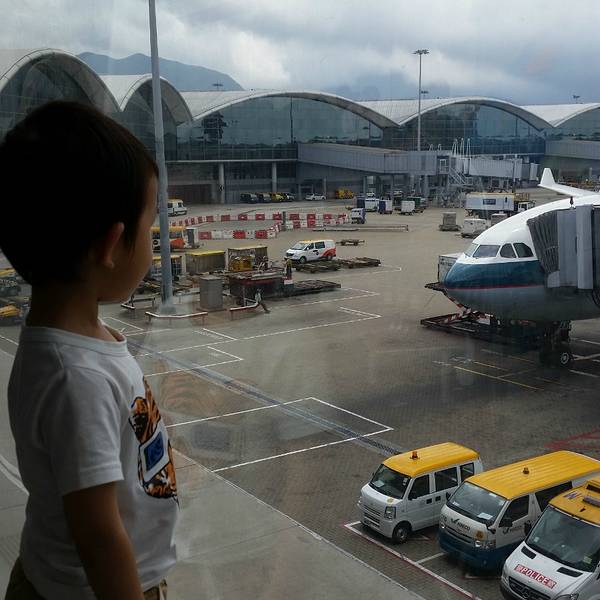 从深圳湾坐7人座商旅直通车到香港机场,150元一人,3岁小朋友收全价。机场柜台换登机牌时根据小朋友的需要要了一个靠窗的座位,飞机上有动画片看,所以2个小时的飞机行程安静度过。