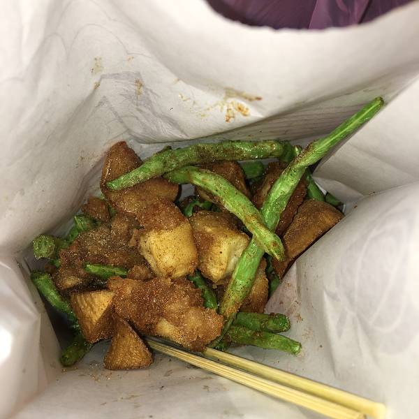 - 米粉汤+猪肠+酥肉,超级好吃。通化夜市:这里不仅很多吃的,与宁夏夜市不同的是还有很多卖东西的小商贩
