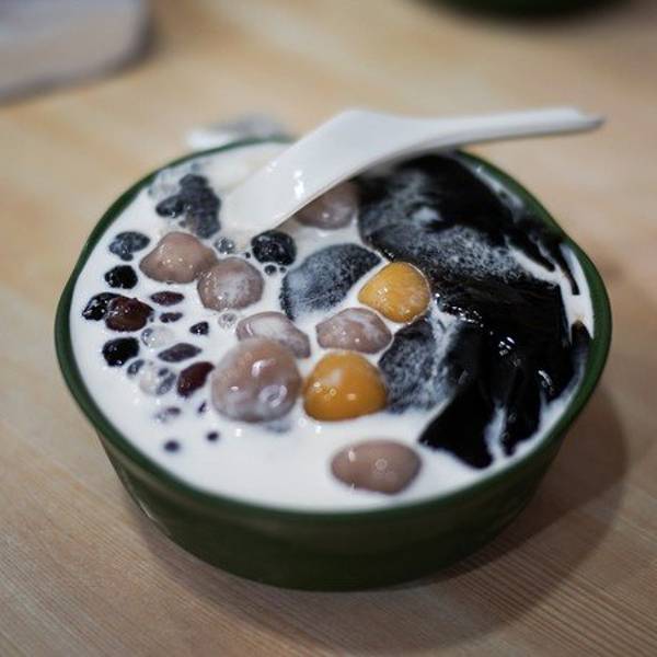 Eva和Lulu说,这两道菜应该蛮符合广东人的口味,的确,蚵仔煎面的口味蛮特别的,有点酸有点稠,挺开胃的~爱玉之梦游仙草