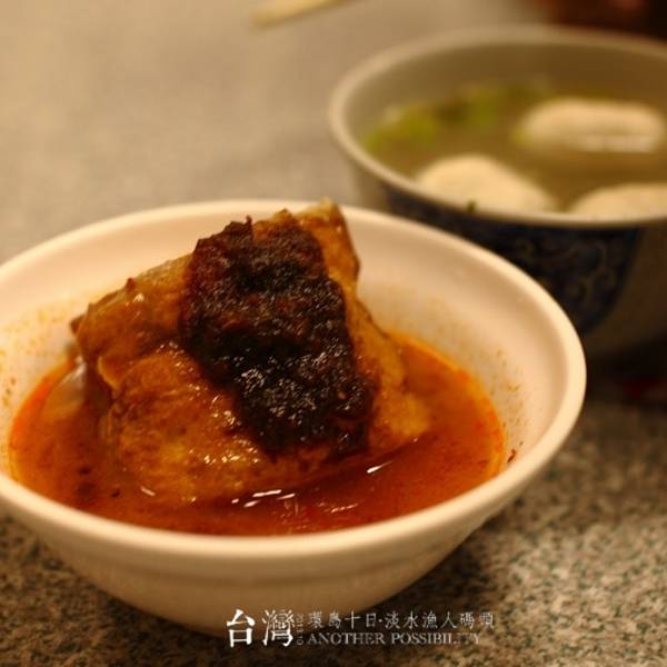 淡水的小吃最出名的莫过于阿给和鱼丸汤 阿给不是人名,所谓的阿给就是大型的油豆腐中间包着粉丝 我点了沙茶味的阿给,酱汁的味道特别浓郁! 把豆腐皮破开,里面的粉丝蘸着沙茶酱,简直是人间美味 鱼丸汤里有我爱的芹菜碎末,飘着股特有的香气 鱼丸很Q弹,绝对是手工制作