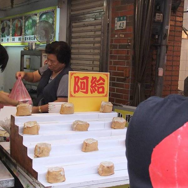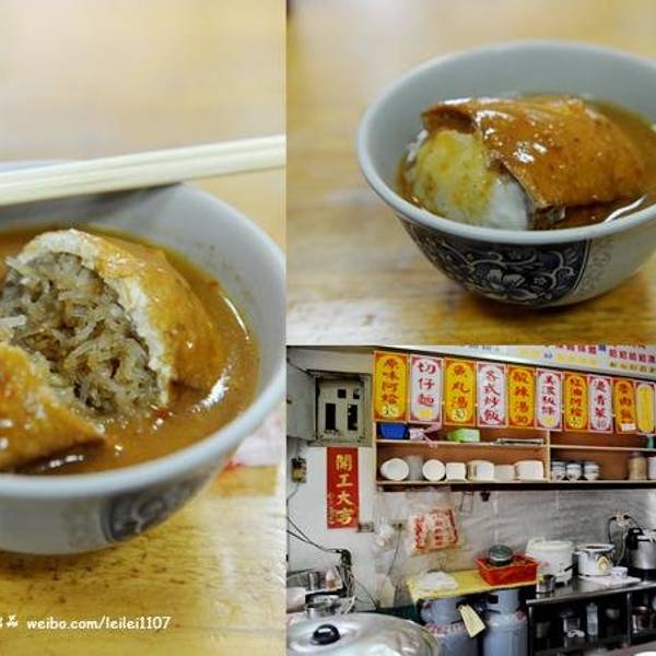 台湾特色小吃,浓重的味道,油炸类的豆腐制品。初次听到这个名字实在不知道是个什么样子的小吃,慕名而来的人很多,我也是!这家店就在台北淡水码头附近,招牌特别明显,台北市区乘坐捷运(台湾地铁)到淡水站下车走到淡水老街之后去往码头方向,店就在折角处一个岔口,人很多很好找。店面很简单有点小地摊的感觉、所谓室内也不过是开放式的,座椅就是木制椅子桌子简单的摆放几张,可以说简陋?反正是有点。招牌非常明显但是也不显得多高大上简简单单的,或许人家靠的是品质,也确实,从络绎不绝的食客就可以看出来。 所谓阿给,其实是一种油炸豆腐之类的东西,里面有粉丝,有说是冬粉,但是我不知道冬粉是什么反正粉丝口感,还有鱼浆,经过蒸制出炉再加上辣椒酱之类的东西,就是放在碗里的阿给了。味道还是可以的很给力,个人表示喜欢的,一个大个的阿给我吃一个也就行了,尝尝而已。他们家其实还有其他不过似乎大家都是冲着阿给去的哦?我自己回家还照着说明做了一下,但是然并卵……还是亲自去吃吧,人家老店也不是白开的嘿嘿! 推荐哈~~~~不远处铁蛋个人不喜欢,硬死了……
