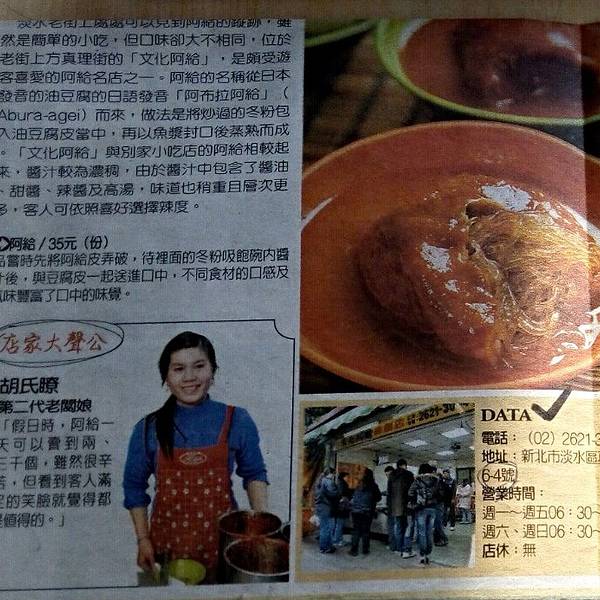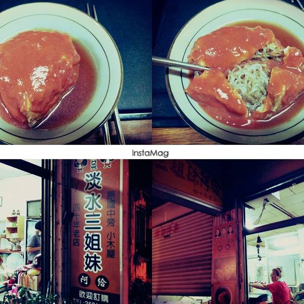 ...”的店有好几家,可惜去的太晚,最有名的那家「文化阿给」已经打烊了,只好选择隔壁的「淡水三姐妹」