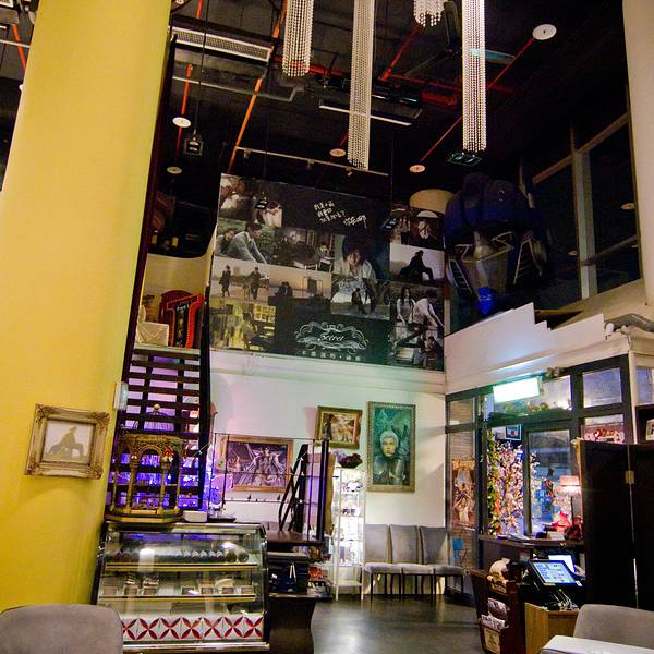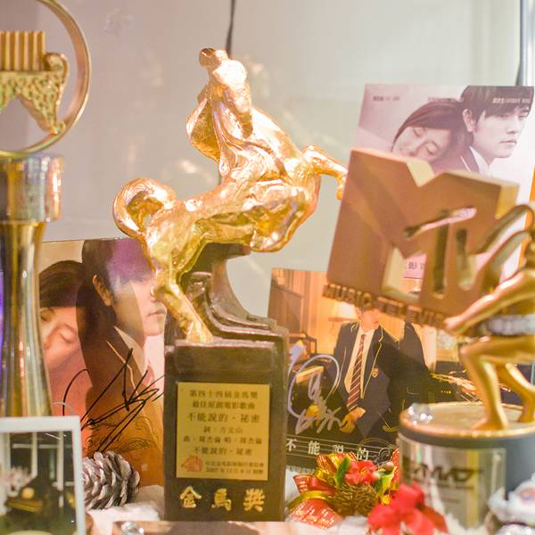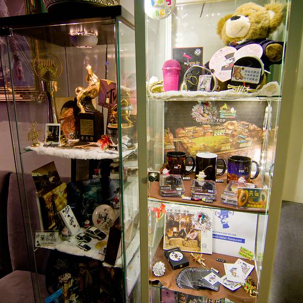 餐厅四周都是周董的收藏品,包括小型摩托车、电影海报,甚至金马奖最佳电影原创歌曲奖奖座等