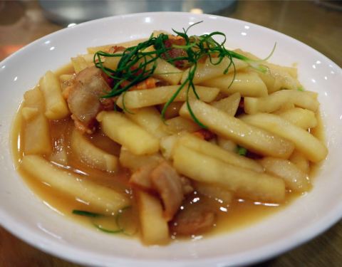 不愧是石塘“唯一能够下嘴”的饭店。 没有价目表 价格全凭一张嘴 服务员爱理不理 味道就是家常菜 环境嘈杂,通风不好香烟味弥漫 这味道,只求不拉肚子 付上给我们报的价格: 炒绿豆面38 红烧肉48 山粉圆38