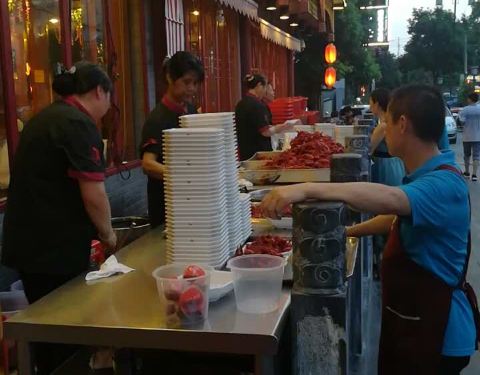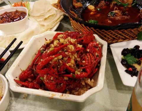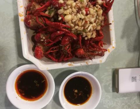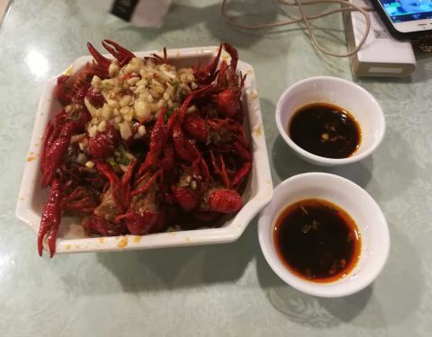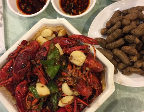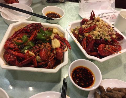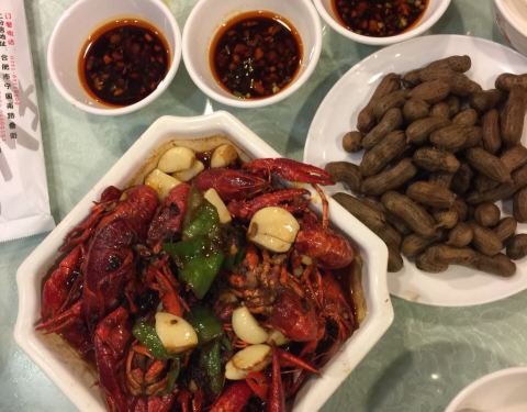 这家合肥是最出名的龙虾店之一,远远就看到店门口一筐筐的小龙虾,场面很是壮观。并不是路边摊,而是富丽堂皇的大店面,整条街都很干净整洁。龙虾的口味有多种,味道都很不错,肉质很有弹性、很新鲜,吃起来很过瘾。