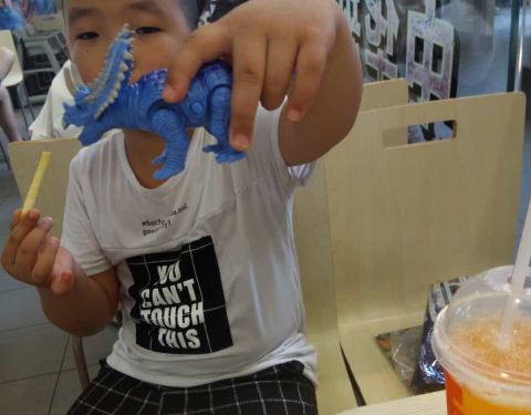 点的儿童套餐,送了恐龙。自己单点的。每次儿童套餐都有不同的惊喜玩具!