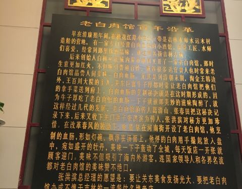 吉林市老白肉馆是一家老字号饭馆,位于临江门附近,店内古朴干净,服务员热情殷勤。好吃还不贵。