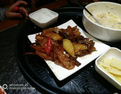 在内蒙的4天几乎每天,每顿都有奶茶,从俄罗斯民族村,到火锅店,到手扒肉店,到牛排店,可见奶茶在内蒙有多重要。这家是市区里比较容易找的锅茶店,价格当时是48一盆,总体感觉还是很值得的。