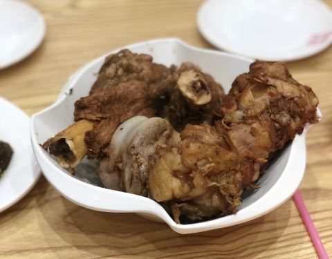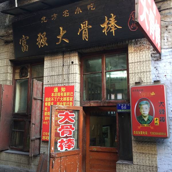 然后就来到了这家富强大棒骨。很小的一家店,但是大棒骨真好吃~ 一盘大棒骨三块,有肥、有瘦还有筋。肥肉不腻,筋炖得够烂,老汤味道很香,还有骨髓也很好吃,瘦肉的味道相比之下要逊色不少了。 不过需要注意的是,他们家大棒骨不单卖,至少还要点3个菜,所以单身狗们请组团前往。单身猪们也许就没有这样的顾虑了~~哈哈哈~