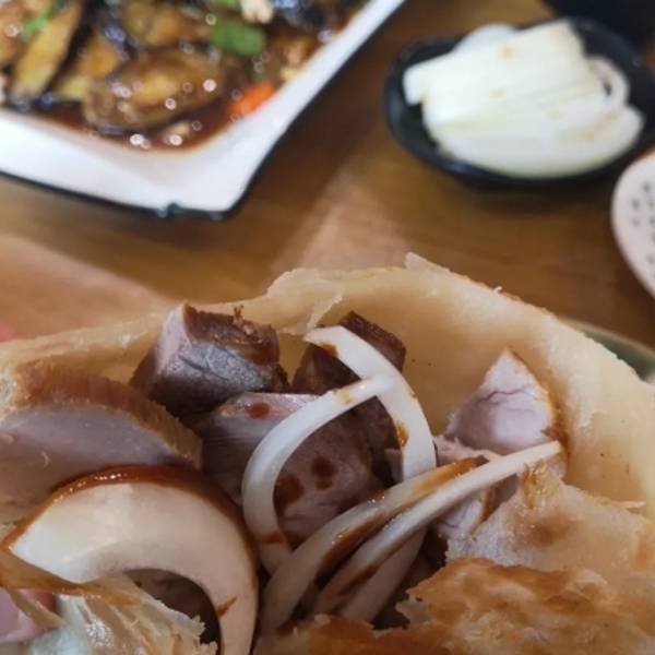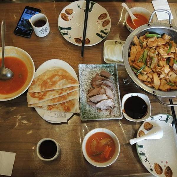 下机场大巴去酒店的时候看见这家店就有一种执念要进去吃。这执念终于在第二天中午达成了。以前没吃过春饼看别桌点了京酱肉丝,太惊喜了,量好足,味真好!另一盘好像是酸菜粉丝,真的好酸,也蛮好吃的。春饼薄而有嚼头,回上海许久好想念春饼啊!另外他家免费的枣茶,味道也很赞赞。 - 店有罐牛/羊(就是华梅那种),如果不去华梅可以在这点来试试,以前去过华梅觉得挺一般
