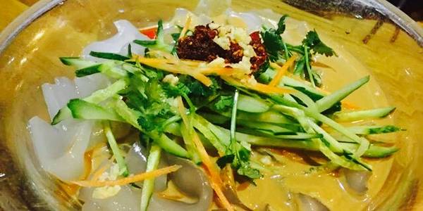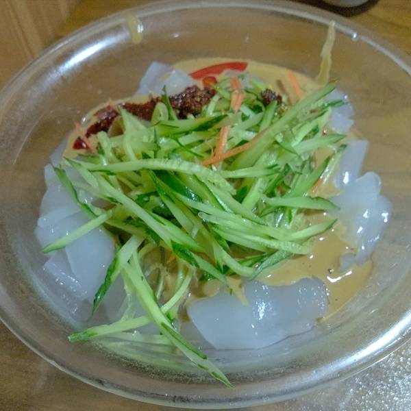 毛毛家还每桌都赠送薏米粥,3个人都够吃,不会因为是赠送的就难吃,薏米什么的煮的刚刚好,甜甜的,现在这种天气,来上一碗立刻驱走寒气,不知道夏天是不是也赠送这个粥? - 另一盘好像是酸菜粉丝,真的好酸,也蛮好吃的。另外他家免费的枣茶,味道也很赞赞实用