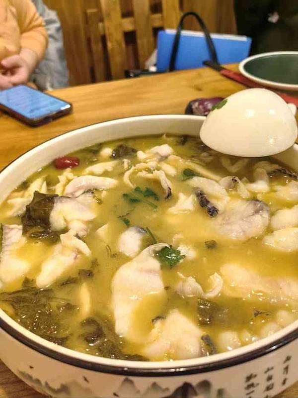 「酸菜鱼」今天的酸菜鱼给差评!味道还可以,但鱼肉没有熟,好多鱼肉还有红血丝,咬不动!