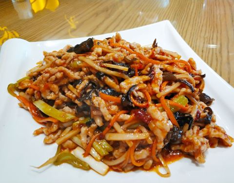 朋友毕业了回哈尔滨看我们定的这家饭店,之前一直都不知道它家,以为烤鸭就只有全聚德呢~ 它家位置挺好找,就在南极街和景阳街的交汇口那块,招牌很大,但是黑色的那种,不是很耀眼~ 它家人真心多,环境不是特别好,进屋就能看到挂了很多烤鸭,馋死人啊~ 不过我印象最深的菜不是烤鸭,而是干锅土豆片,那个土豆真的是超好吃啊,不过烤鸭也很不错的,大家都吃了很多,还有一个大白菜炒粉丝也非常好吃,他家菜都不算特别咸,而且香味十足,特别喜欢啊~ 服务员的态度也蛮好的,还帮我们合影了~