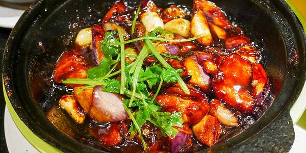 【榴莲酥】真的不错,上来是热乎乎的,外皮特别酥,咬一口,榴莲味和榴莲馅都涌出来了,烫口,但停不下来 【小资馋嘴蛙】点评上推荐的比较多,牛蛙确实不错,肉质鲜嫩,不柴很好嚼,味道也很好,微麻辣口,里面配菜黄瓜条,很清香。就是油太多了,端上来的时候表面要凝结出油层,感觉不像是刚做好的,可能他家人太多了吧 【松子鲈鱼】颜值蛮高的,浇汁后还在上面装点了青豆和松子,师傅刀工很好,鲈鱼比较新鲜,炸的很酥,颜色很好看,但汤汁太稠过多,盖住了鱼本身的味道 【鱼腩茄子煲】鱼炸过了,有点硬,茄子很入味,就是油太大而且很咸,泡饭吃还可以