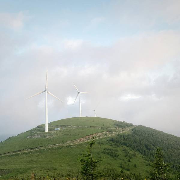 苍茫的草原,白色风车林立,云雾环绕,一幅人间仙境美景。俯瞰沿途的美景