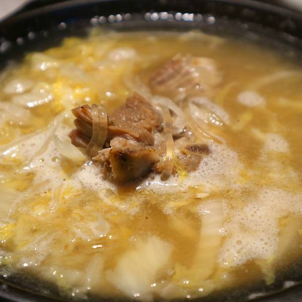 同样又是网上推荐的店,同样只给了三颗星。看起来菜单很实惠,因为几乎我们点的菜都是十多元不到二十每样,总价才消费了84元,再加上支付宝支付又优惠了12元,所以才花了72元。我以为那个砂锅里面应该有比较多的菜,结果不管是我点的骨架酸菜粉丝锅,还是他点的蛋黄狮子头酸菜锅,都是一样很多汤,菜很少,就连粉丝都很少,之所以点了两个砂锅,是因为店员说砂锅是一人份的。还点了一份熏马哈鱼,没什么特别的味道,没有自己炸的带鱼好吃。