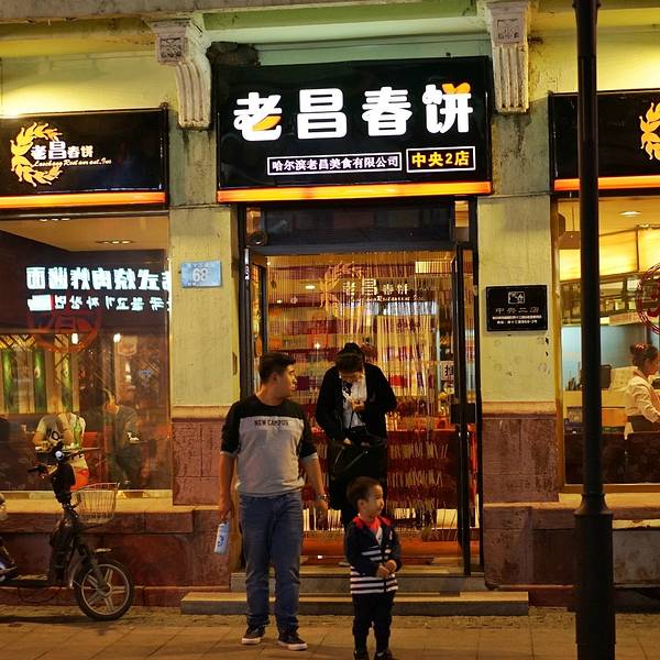 - 说到美食,不得不提哈尔滨中央大街店的老昌春饼。老昌春饼店不仅食物很香,价格还很便宜,并且能够吃饱